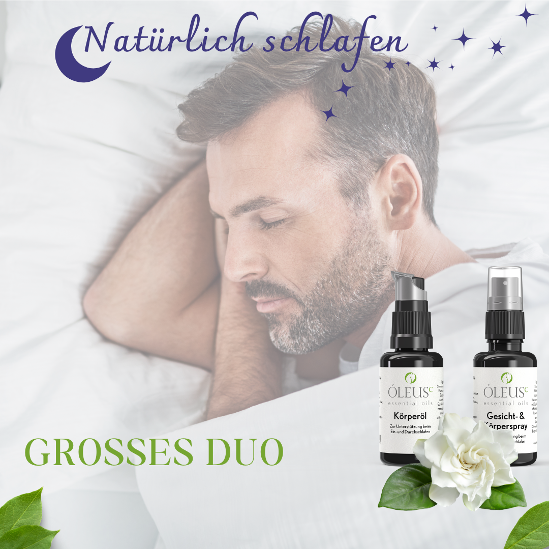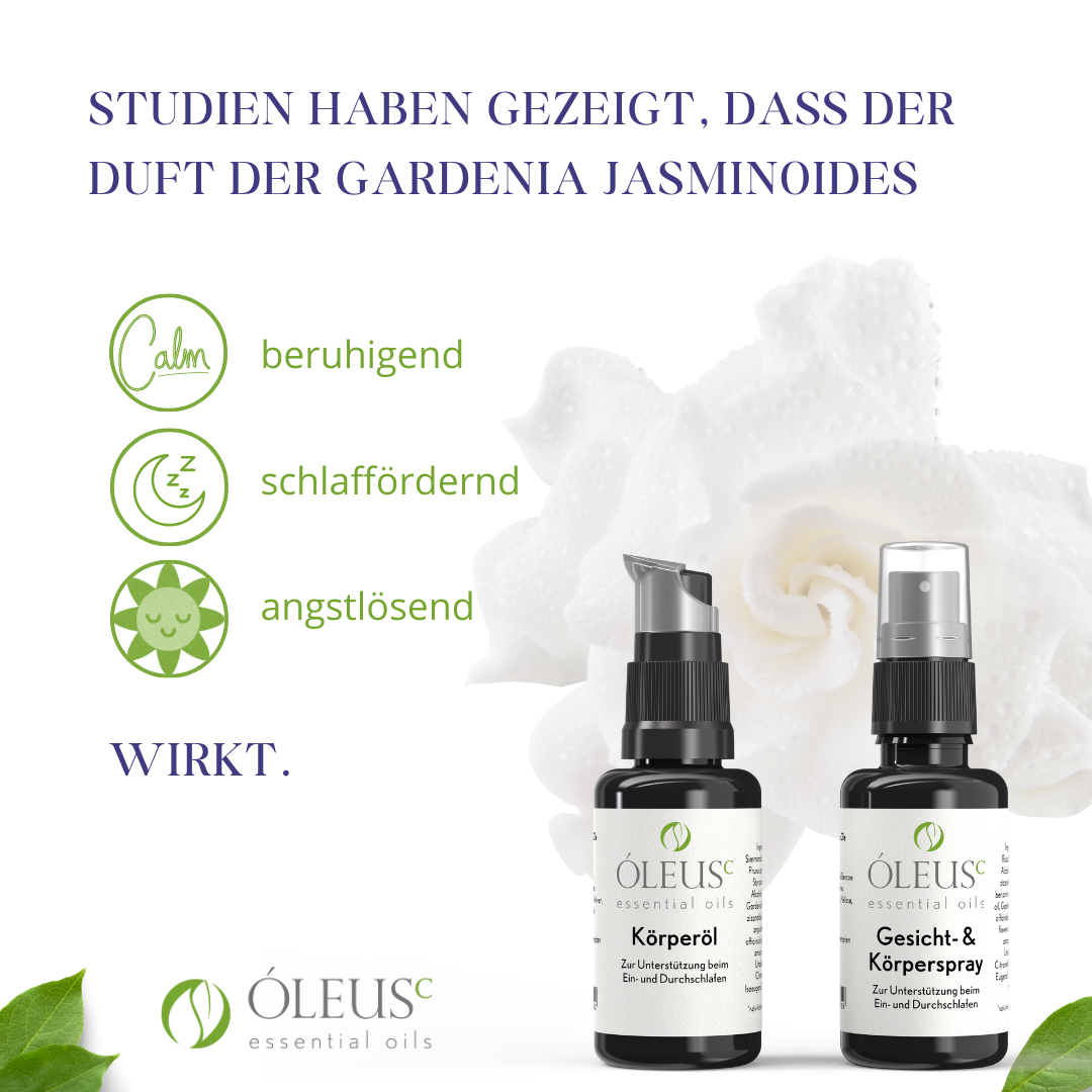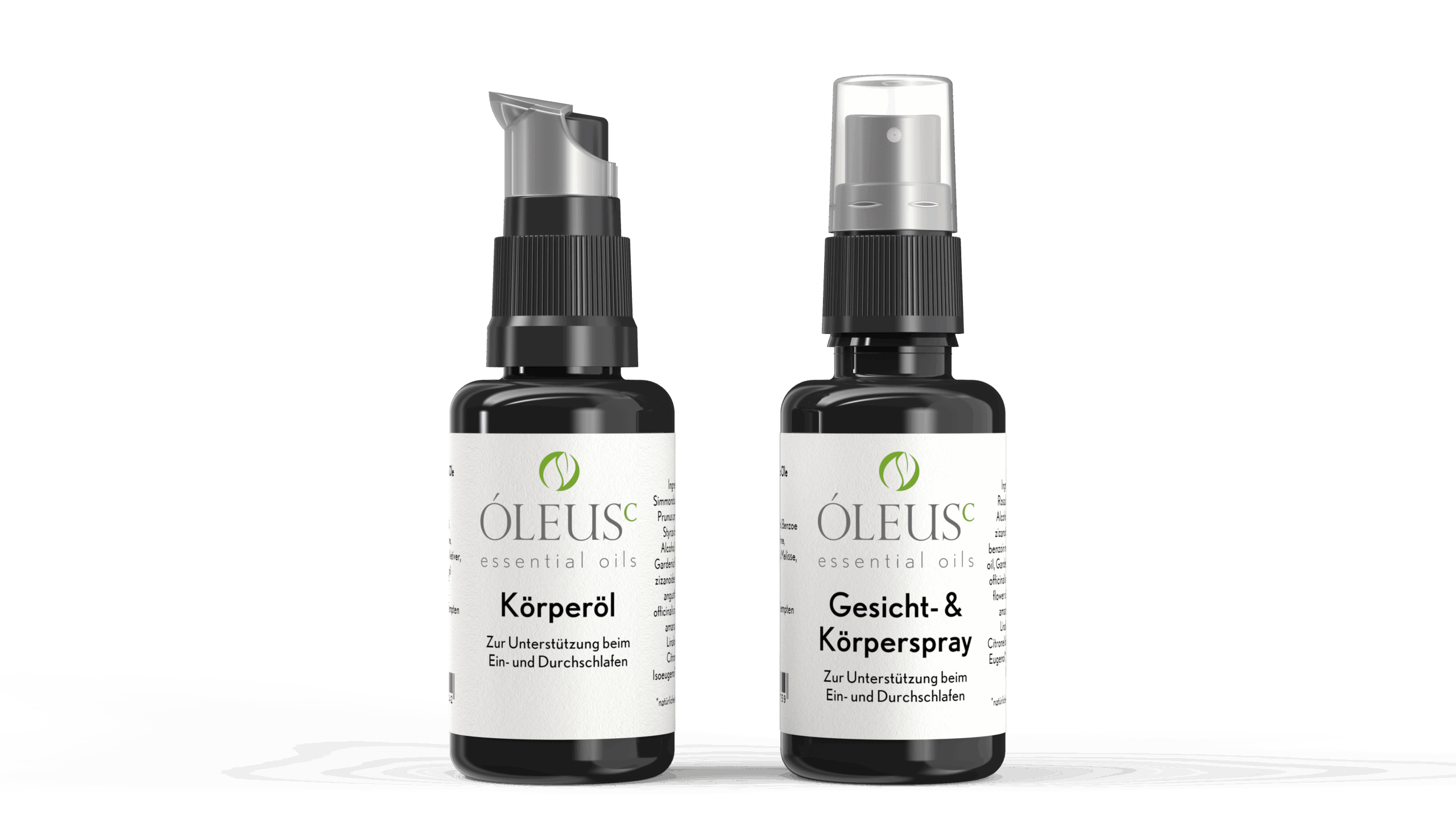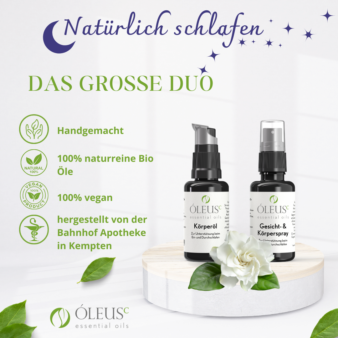Unser großes Duo besteht aus dem ÓLEUS C-Körperöl (30 ml) und dem Gesicht- und Körperspray (30 ml).